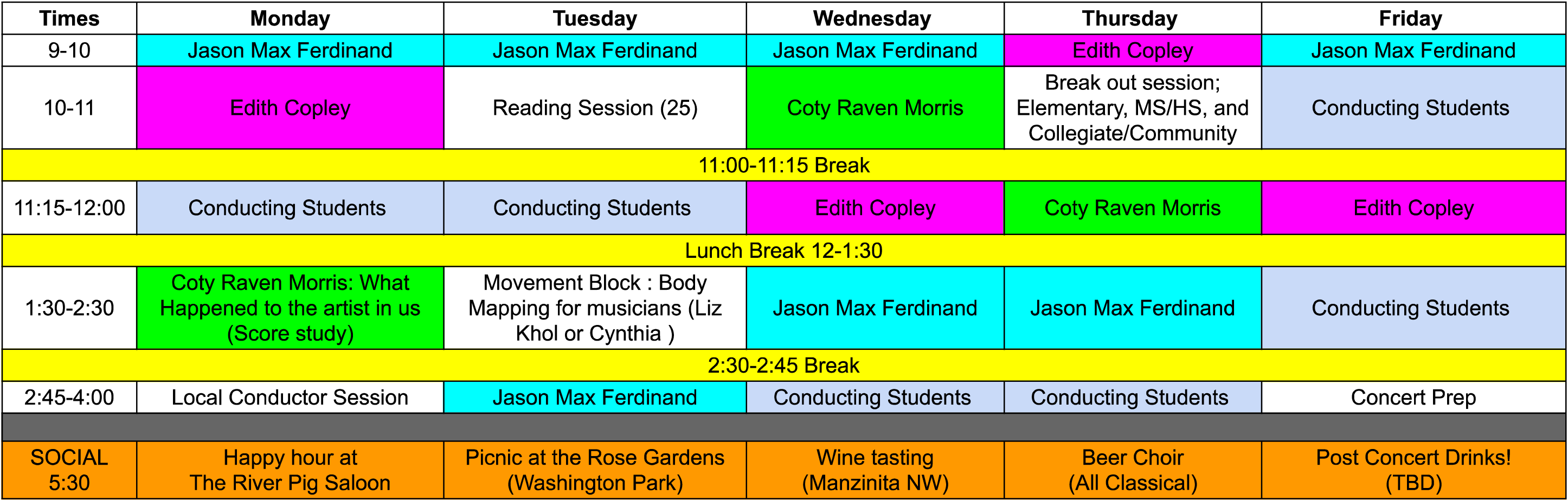 All registrants participate in daily practical conducting instruction with our Conducting faculty. Various warm-up techniques and their effect on the voice are explored. All registrants participate as the choir for the reading and conducting sessions. All weekday workshop sessions will be held on campus at Portland State University.