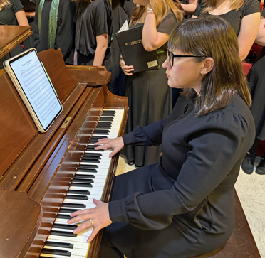 Maddie is a proud Oregonian with an appetite for travel and trivia. She grew up in the family recording studio, singing for audio projects starting at the age of 5 and began playing piano shortly thereafter. After graduating with a music degree from Oregon State University, her dreams of singing backup for James Taylor or Steely Dan took her to Nashville, TN where she spent three years exploring the music industry and recording background vocals for various projects. Following her stint in the South, she moved home to Portland where she fulfills her passion of accompanying and singing in choirs while working her *real job* at the Dougy Center. When she is not tickling the ivories, she is playing choo-choo trains with her son, enjoying the Portland foodie scene with her husband, or snuggling with her German Shepherd in their Beaverton home.